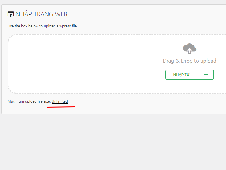 2. Tăng giới hạn upload cho plugin All-in-One WP Migration