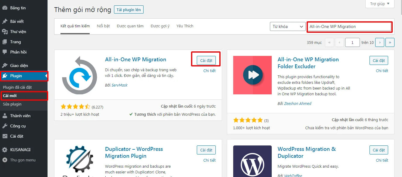 2.1 Cài plugin All-in-One WP Migration đã được bỏ giới hạn sẵn